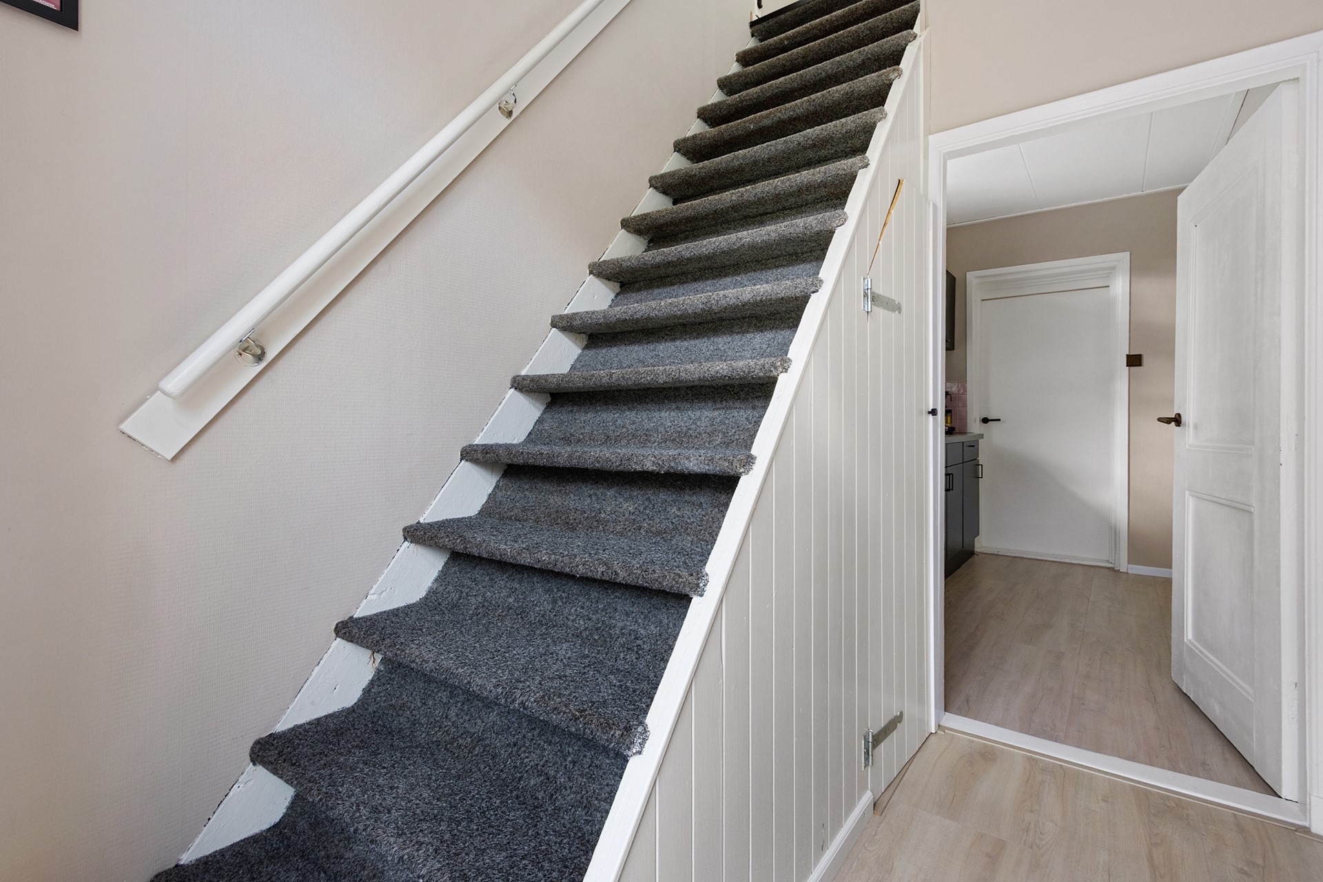 Via de voor entree komt u in de gang met de uitgebreide meterkast, de ruime kelder, en de trapopgang, de nette dichte keuken met inbouwapparatuur. Via de doorgang komt u in de gezellige woonkamer.