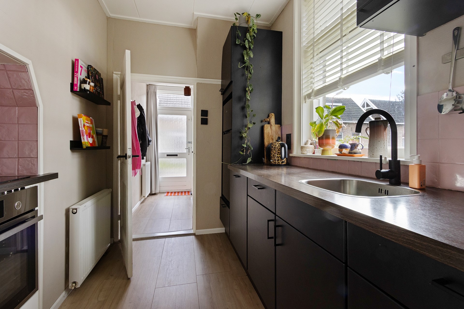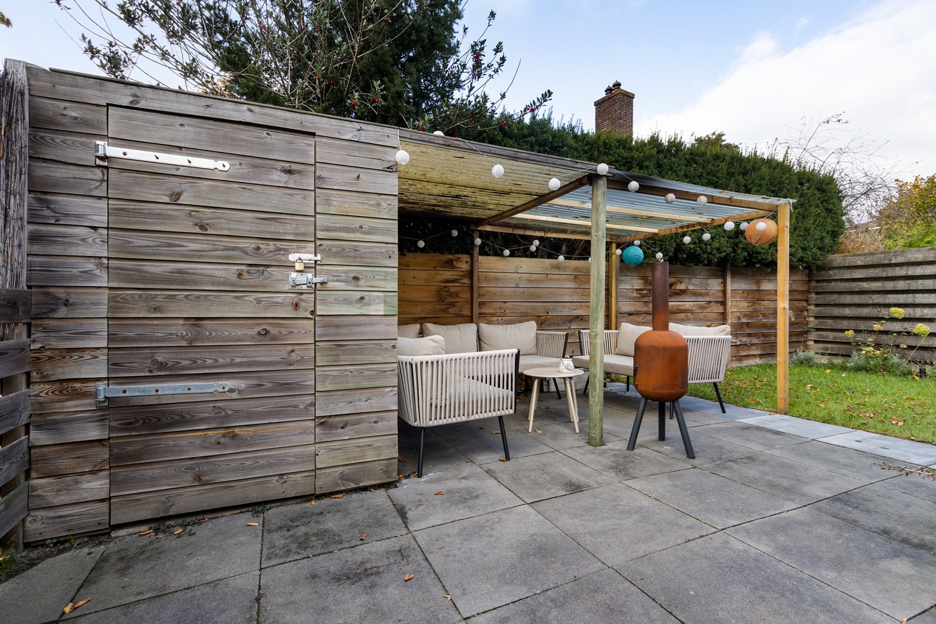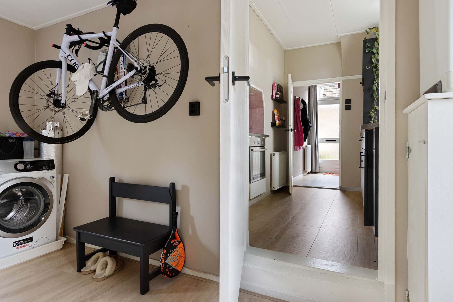 In de bijkeuken bevindt zich de CV ketel uit 2013, de witgoed opstelling, het toilet en de douche met vaste wastafel. Via de bijkeuken komt u in de tuin met de houten berging en de overkapping .